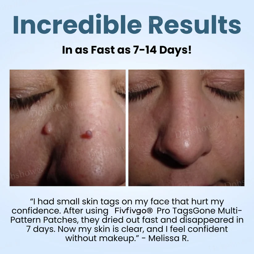 That’s where Fivfivgo® Pro TagsGone Multi-Pattern Patches come in! These patches are designed to quickly and safely remove warts, moles, and skin tags. They use advanced technology to target these skin growths, promoting their gradual elimination without pain, scarring, or expensive treatments. With regular use, you can see visible results in as little as two weeks. Simply apply the patch to the affected area, and let it work its magic—no need for invasive procedures. Whether you're dealing with stubborn warts, unwanted moles, or irritating skin tags, Fivfivgo® Pro TagsGone Multi-Pattern Patches offer a convenient, at-home solution to achieve smooth, clear skin.