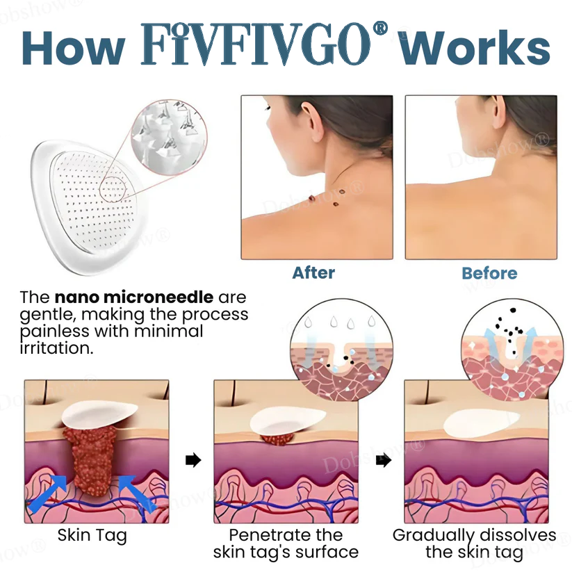 ✅ Safe & Expert-Tested – Fivfivgo® Pro TagsGone Multi-Pattern Patches are dermatologist-approved and rigorously tested to ensure safe, effective removal of warts, moles, and skin tags. Our advanced, gentle formula is designed to work on all skin types, providing powerful results without causing irritation, pain, or scarring. You can trust Fivfivgo® for smooth, clear skin every time.